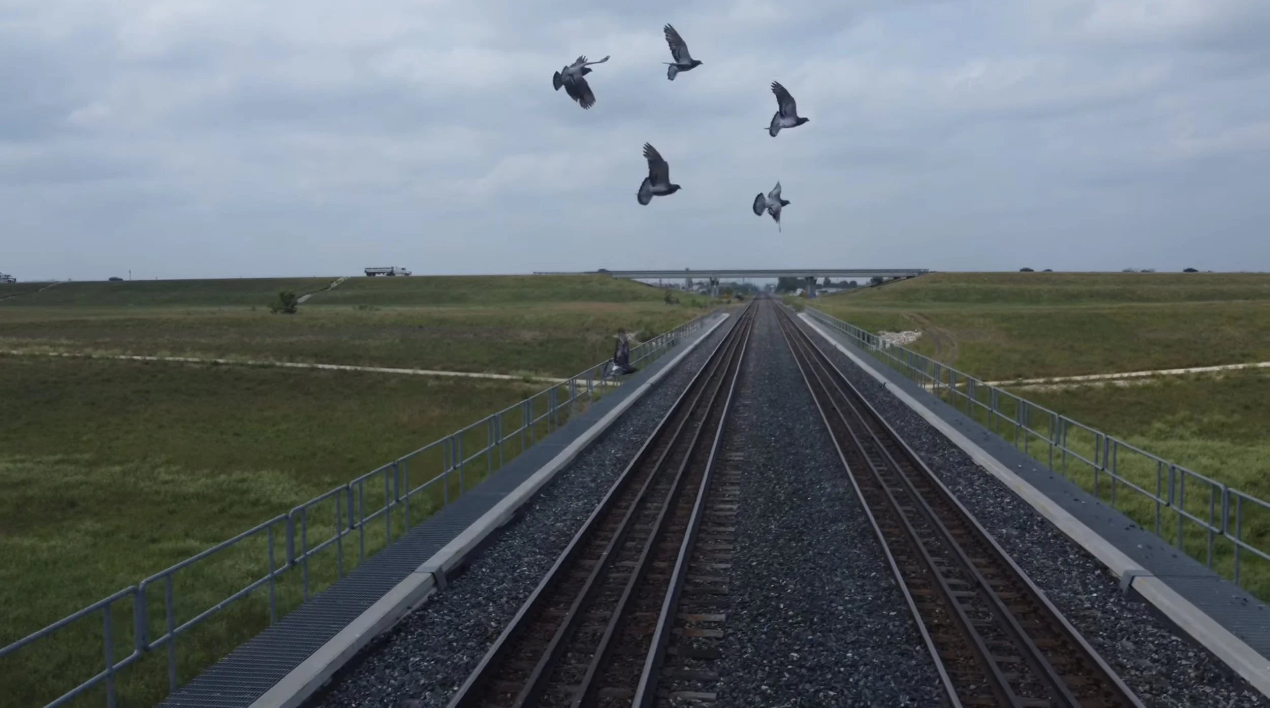 Took the Mavic Mini 2 out to do some low and fast flying over the train tracks. As I was setting up this kit of pigeons flew across my field of view.